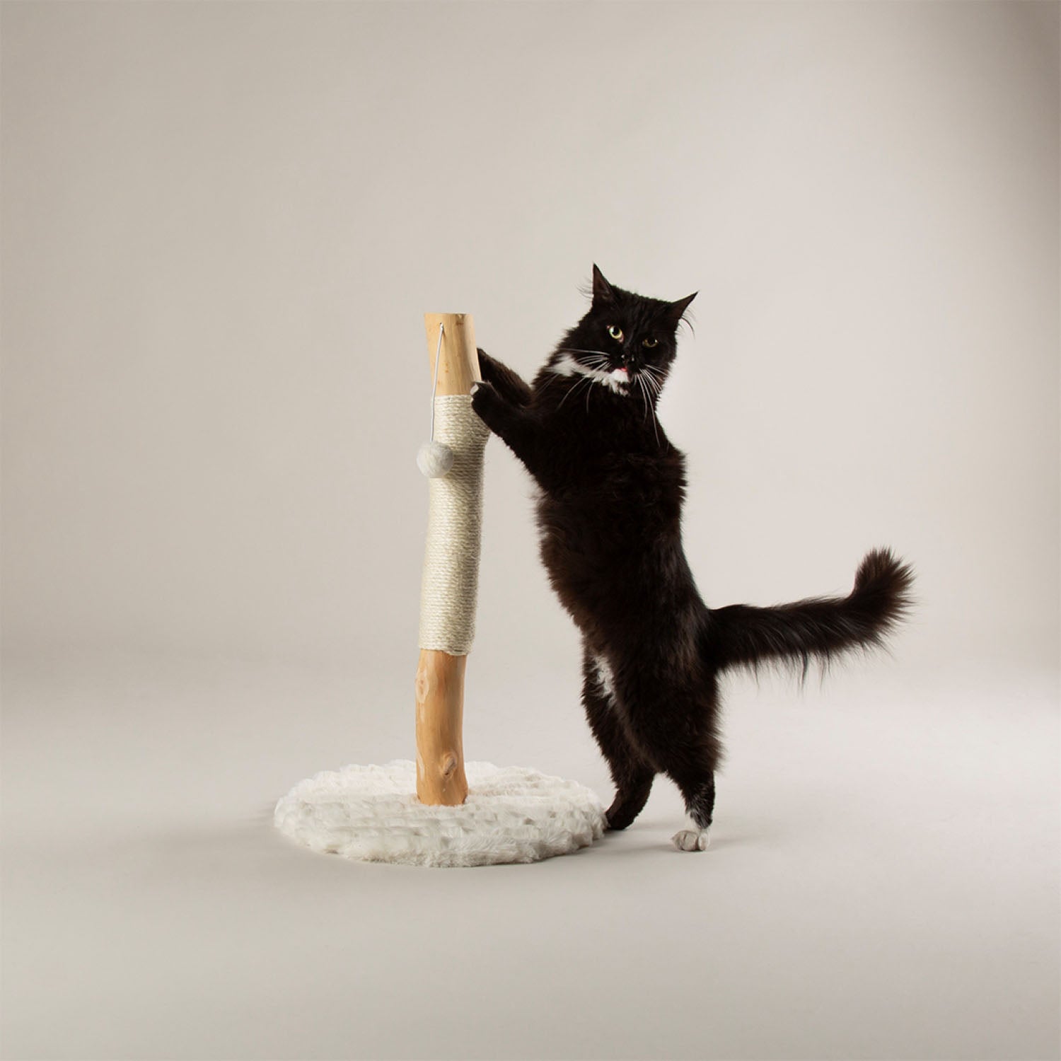 Each piece is made with tough and sturdy pear wood, which cats love to scratch, with additional sisal scratching areas, so it is more akin to natural scratching posts than tubed cat trees.