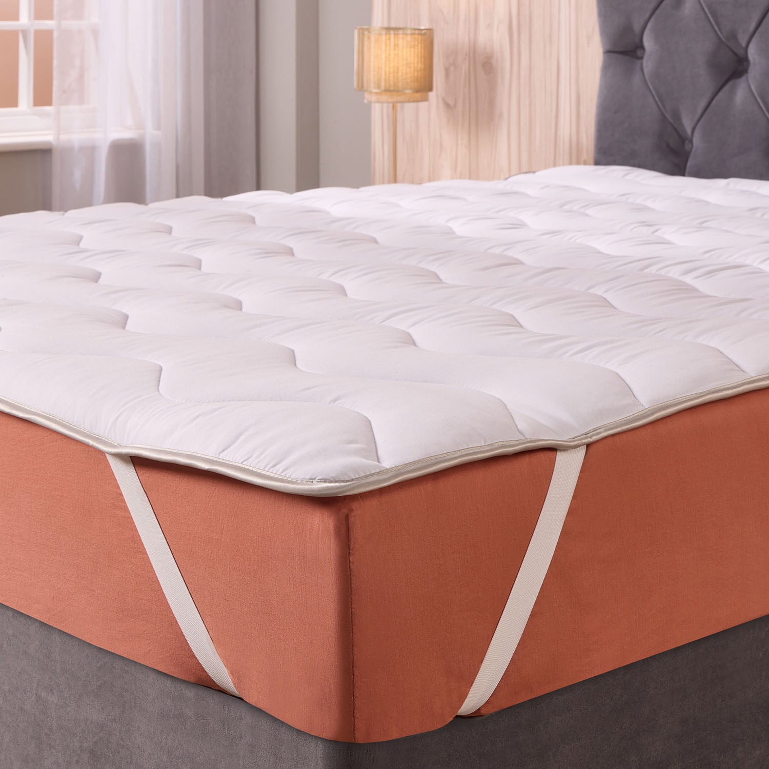 The thoughtfully crafted elasticated corner straps ensure a snug fit on any mattress size, keeping your topper securely in place throughout the night.