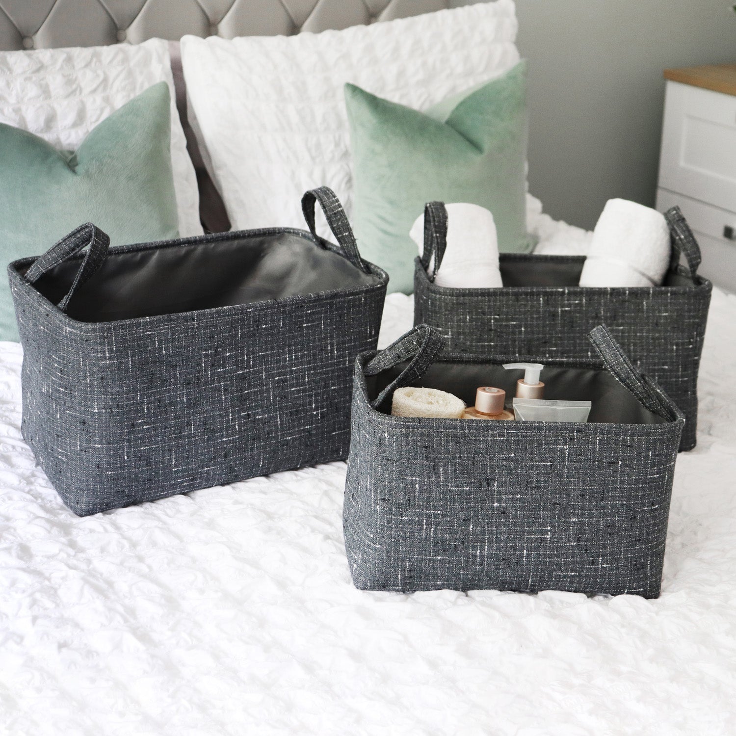 Shadow Set Of 3 Rectangular Fabric Storage Baskets with Handles