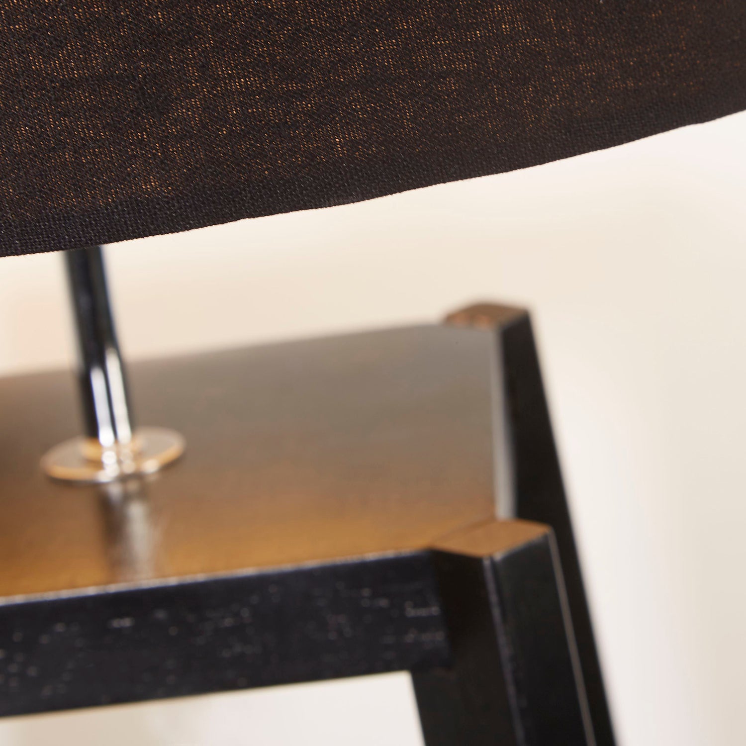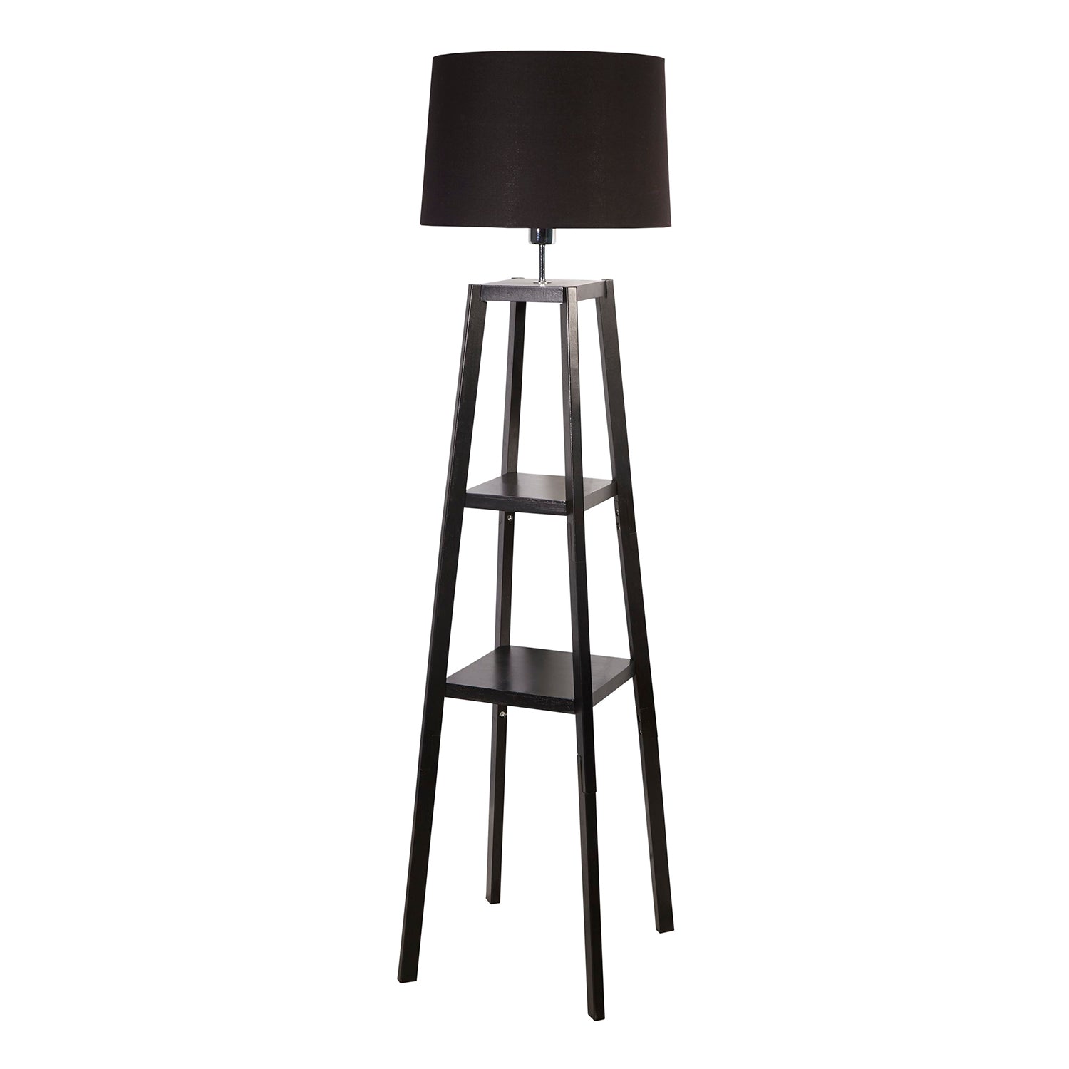 This modern black floor lamp with built-in shelves is perfect for providing both storage and soft ambient lighting.