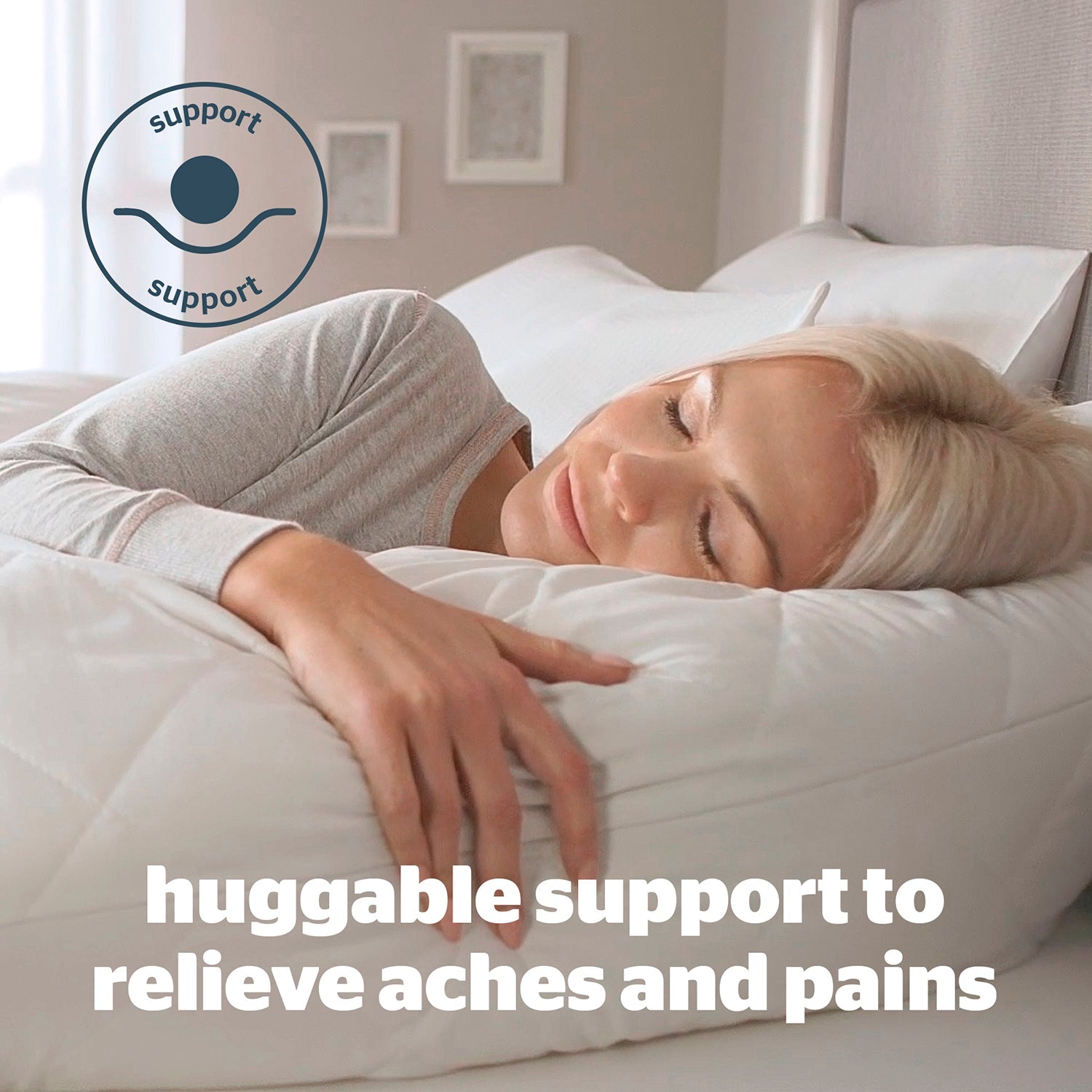 • HUGGABLE FULL BODY SUPPORT: Gently relieves pressure and aches with support where you need it, so you can easily find a comfortable sleep position. Hug to relieve pressure on your shoulders, or place between the knees to aid spinal alignment and relieve lower back pain. Perfect to gently support pregnancy bumps.