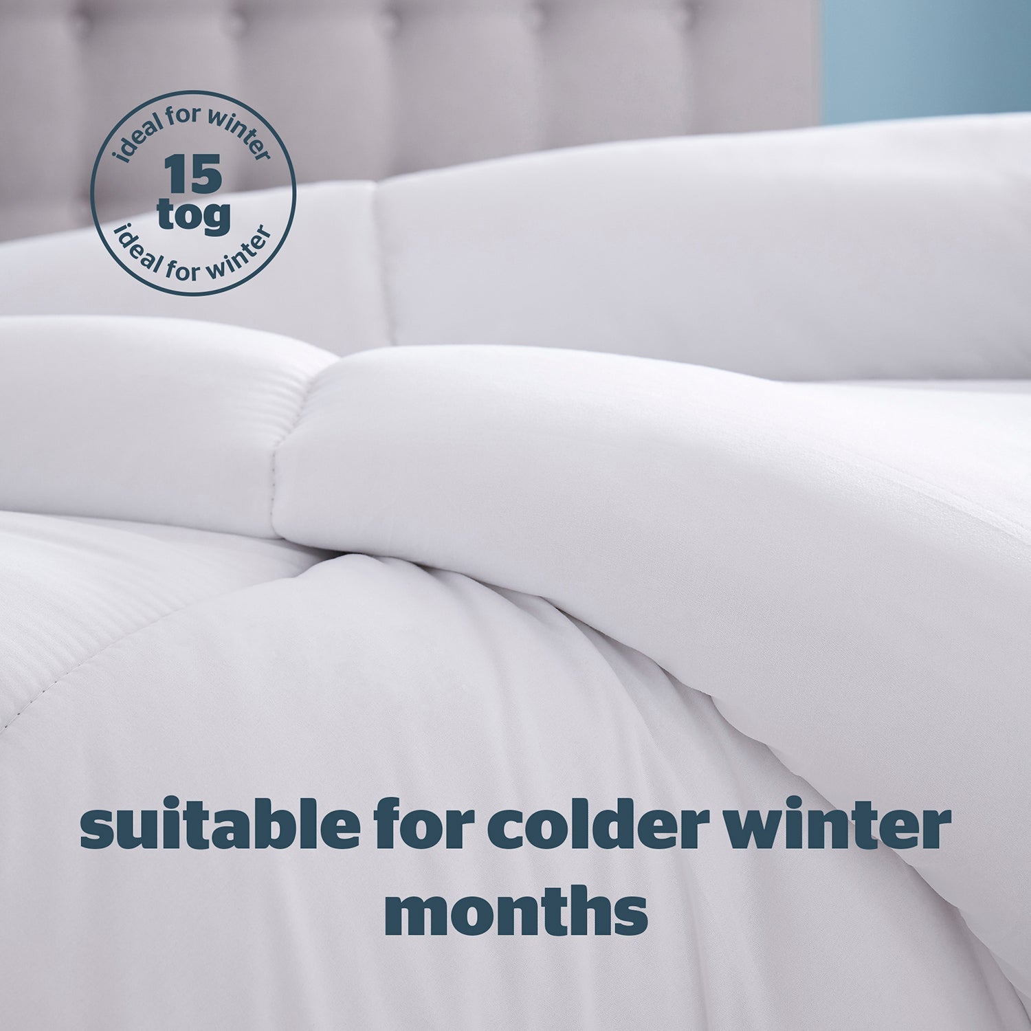 Sink into deeper sleep with this Silentnight Deep Sleep 15 Tog Duvet. Generously filled for endless comfort and support, helping you to sleep more deeply every night. The Silentnight Deep Sleep Duvet is generously filled with hollowfibre and covered in soft microfibre which results in a soft, cosy and lofty duvet that will envelop you with comfort.