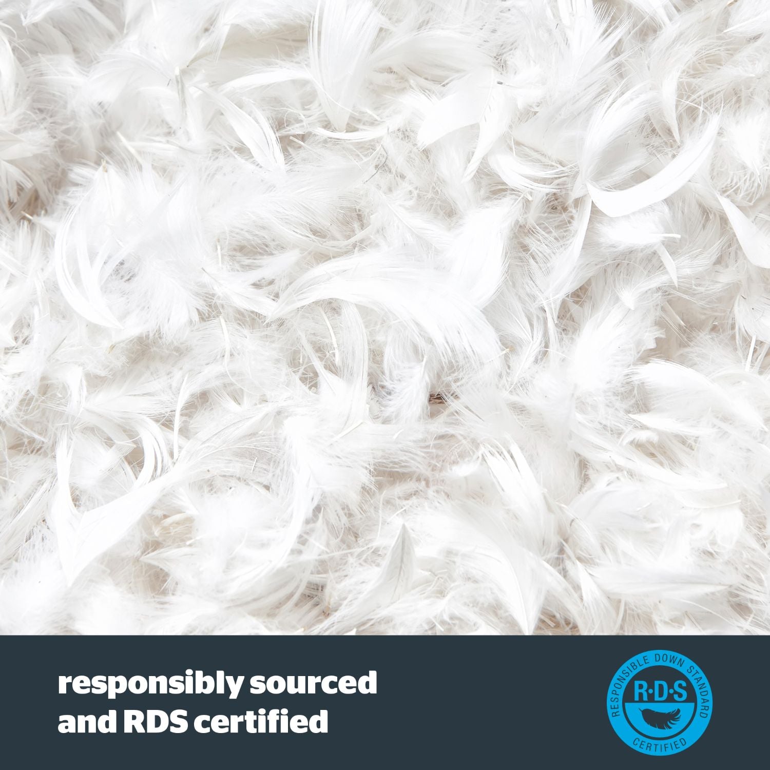 The breathable cotton cover not only provides superior comfort it also contains anti-bacterial properties to protect you from bacteria and dust mites, keeping you fresh whilst you sleep. All our feathers are responsibly sourced and RDS certified.