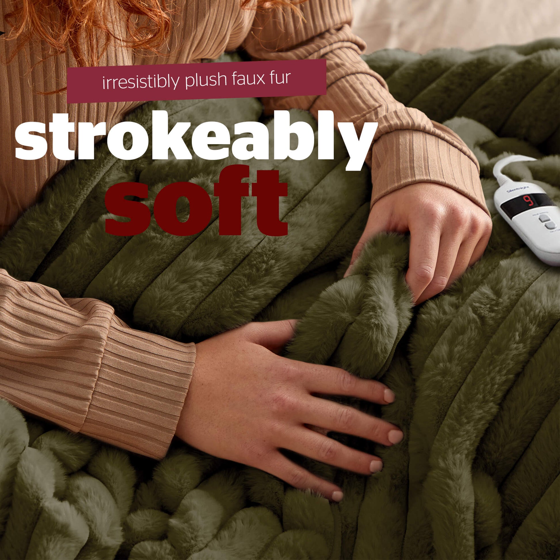 Silentnight Luxury Ribbed Faux Fur Green Heated Throw