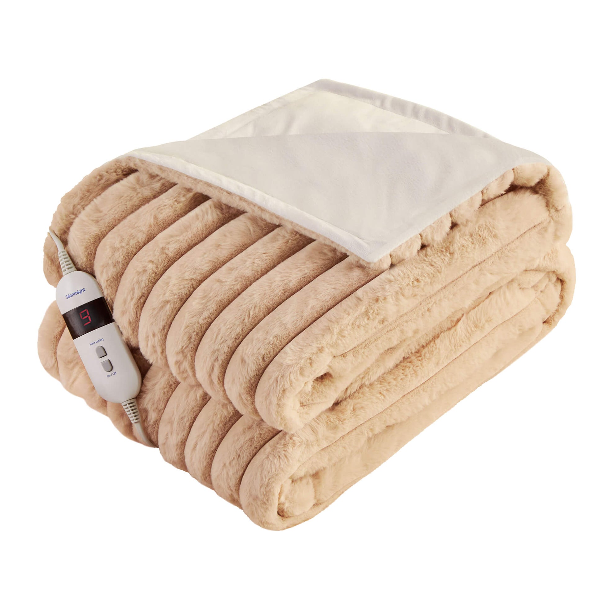 Silentnight Luxury Ribbed Faux Fur Natural Heated Throw