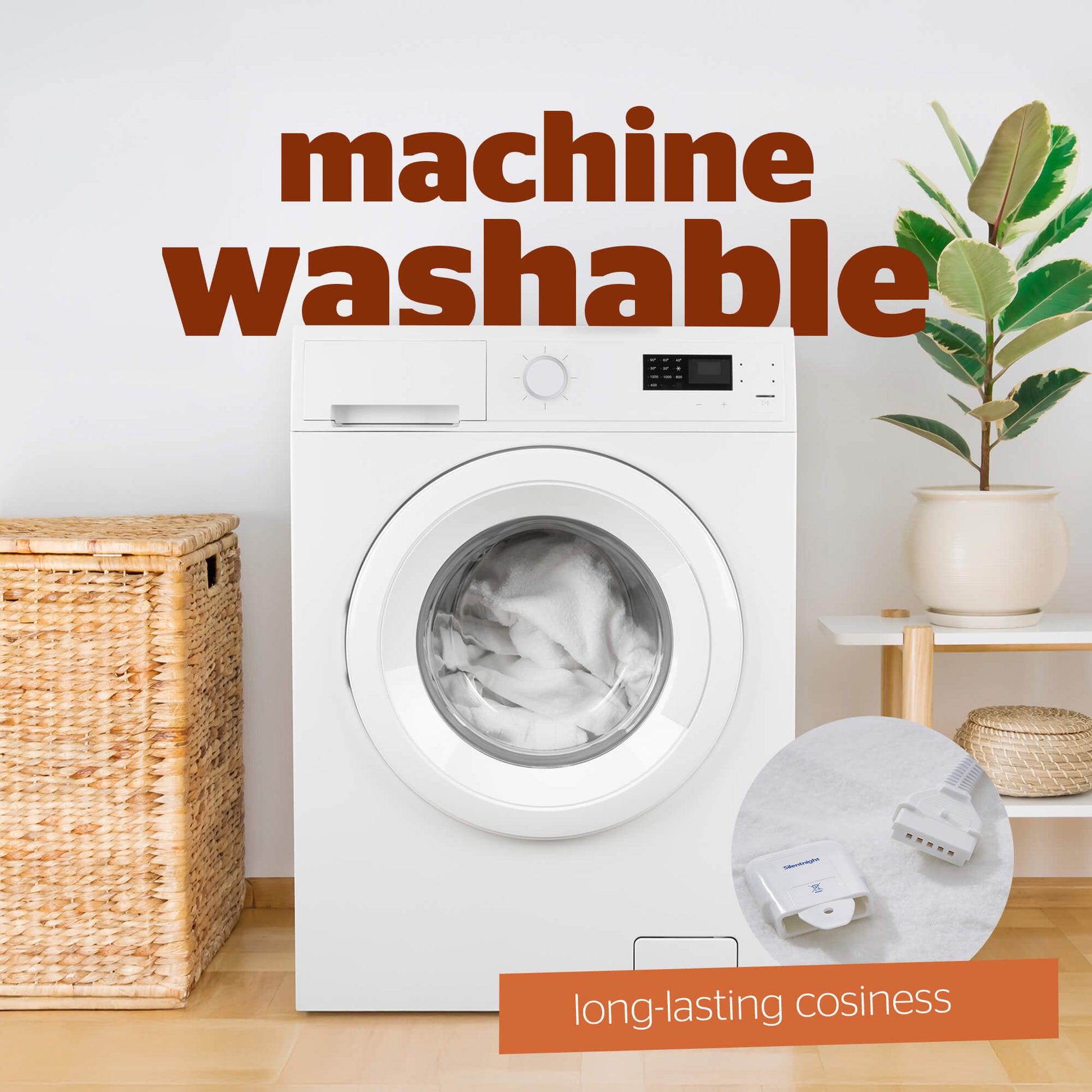 Make sure the controller is not covered or placed near other heat sources, such as a hot water bottle. The throw is fully machine washable; simply detach the wire and place the throw in the washing machine to keep it fresh.