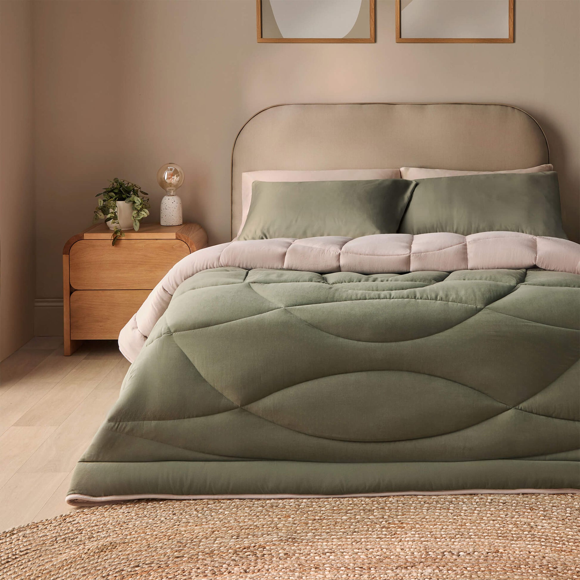 Silentnight Olive Green Reversible Coverless 10.5 Tog Duvet Set