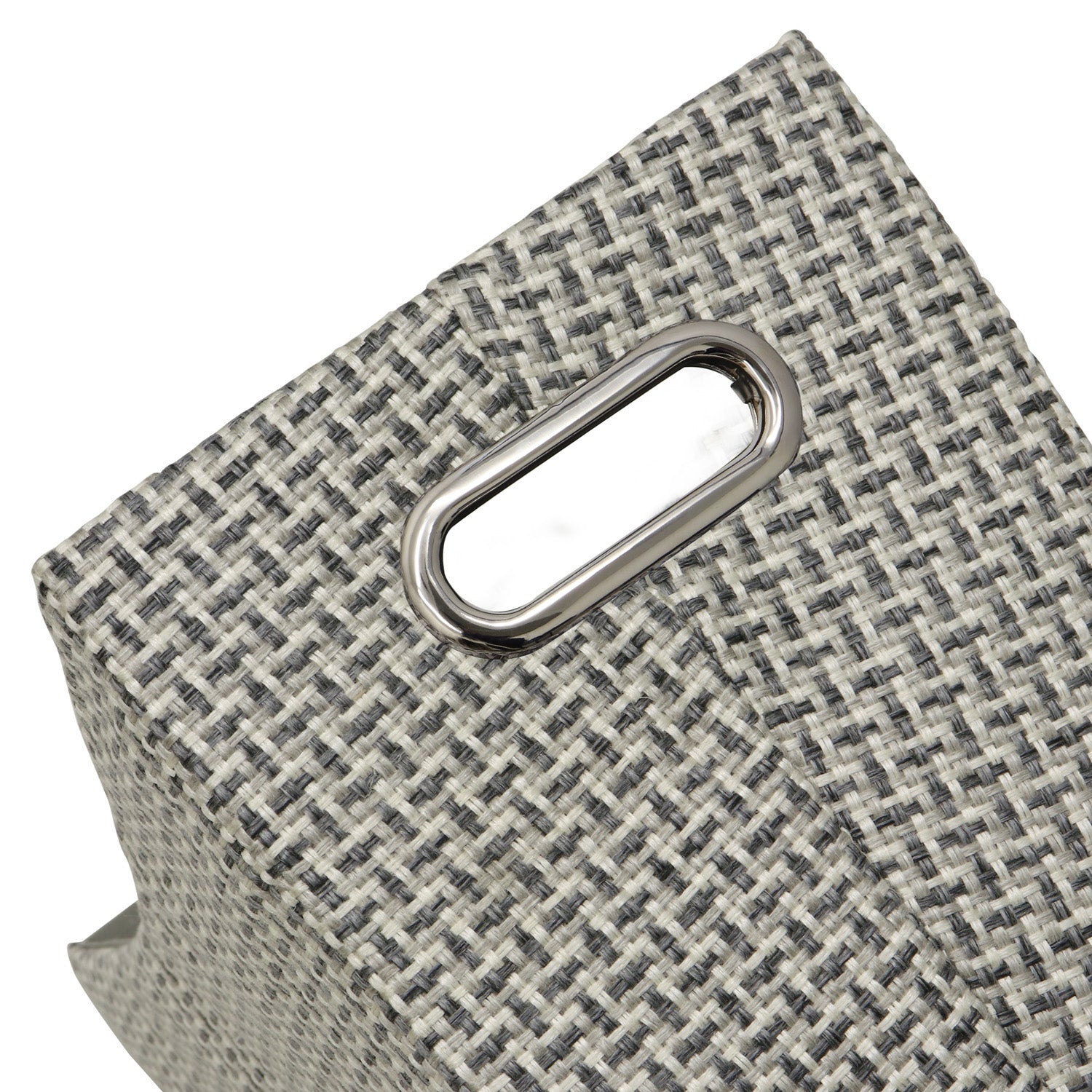 Our Silva storage collection reflects our woven heritage with a striking basket weave fabric in muted grey tones, creating a dog tooth effect, ideal for any interior decor.