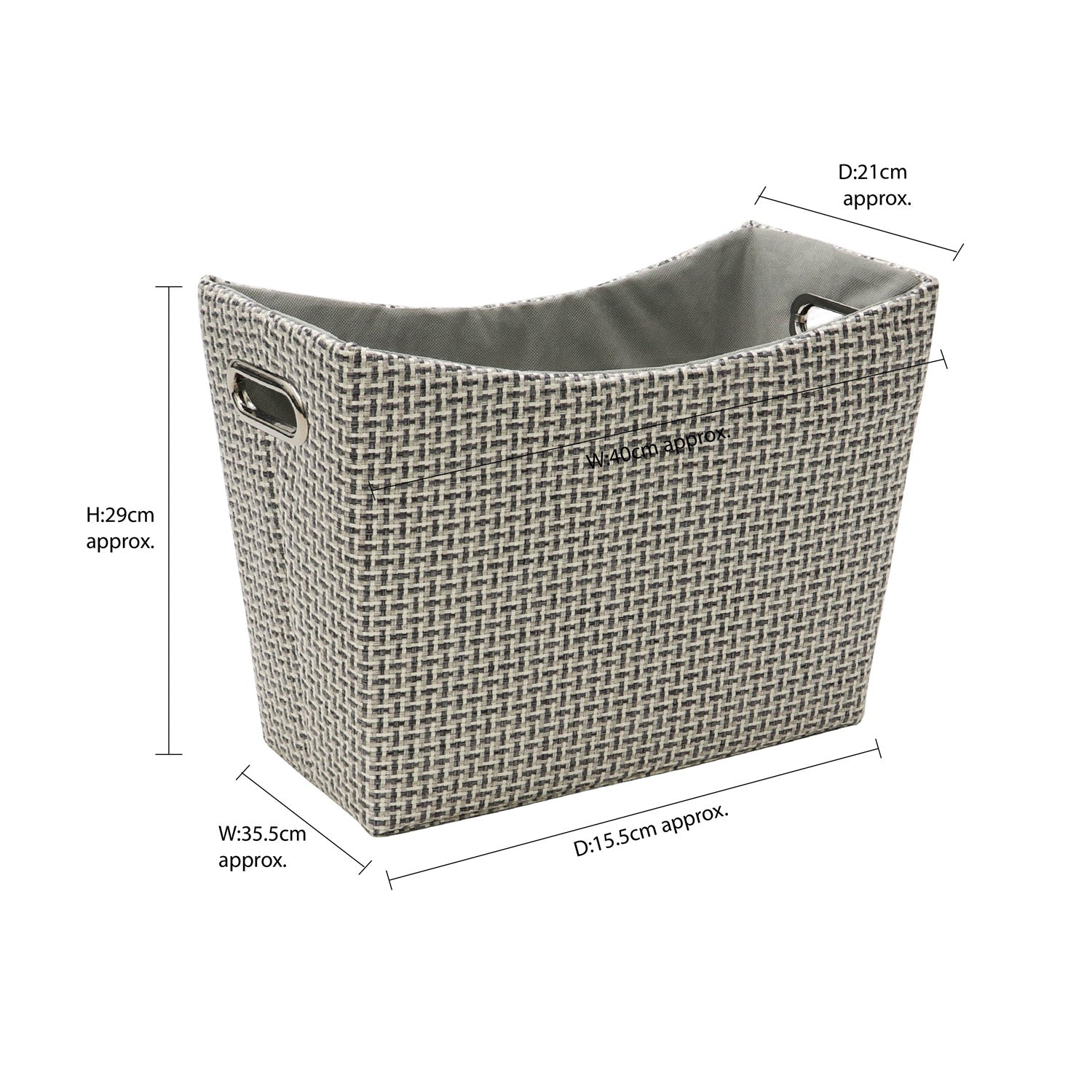 • Size: H:29 x W:40 x D:21cm approx. Base W:35.5 x D:15.5cm approx. Capacity:30l approx.