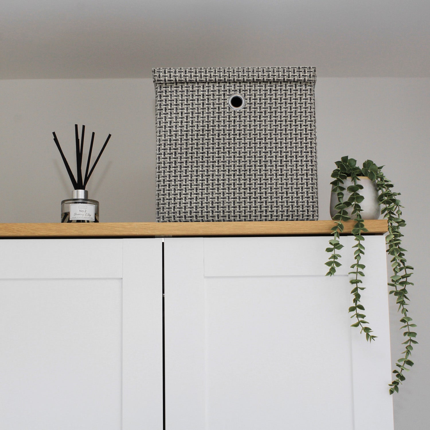 Our Silva storage collection reflects our woven heritage with a striking basket weave fabric in muted grey tones, creating a dog tooth effect, ideal for any interior decor.