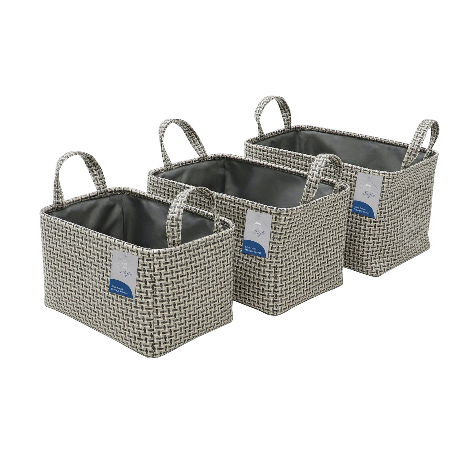 Silva Set Of 3 Rectangular Fabric Storage Baskets with Handles