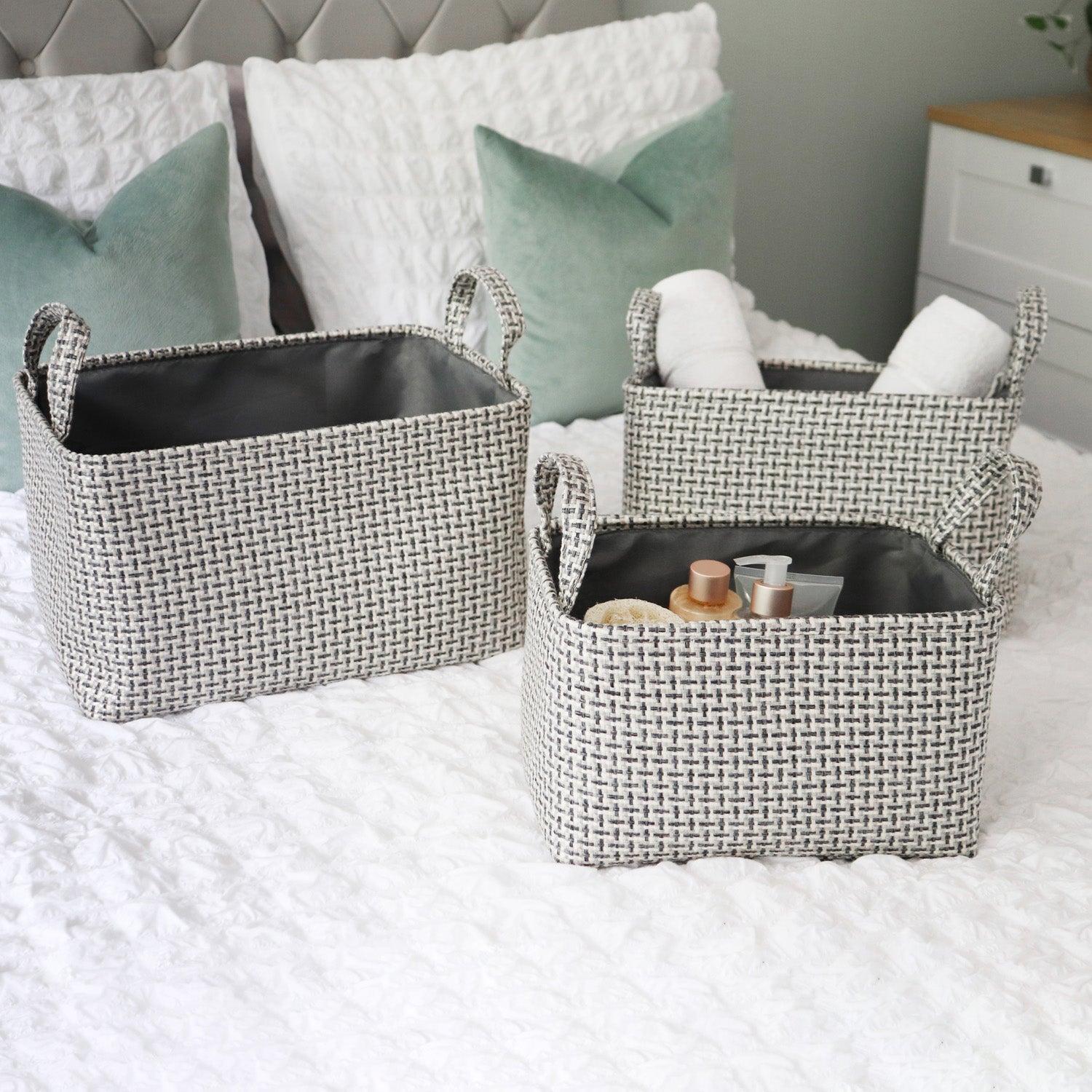 • Complete set of 3 rectangular storage baskets.