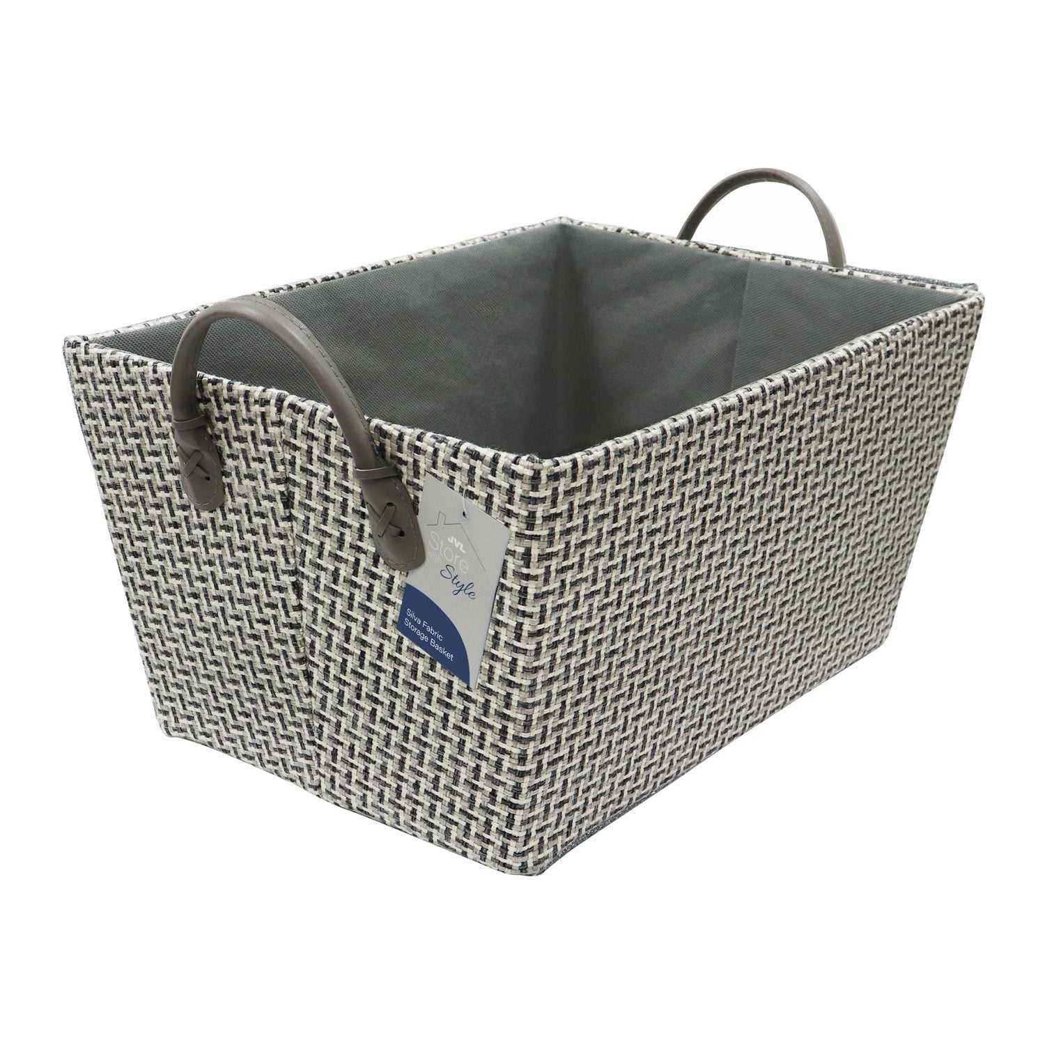 Our Silva storage collection reflects our woven heritage with a striking basket weave fabric in muted grey tones, creating a dog tooth effect, ideal for any interior decor.