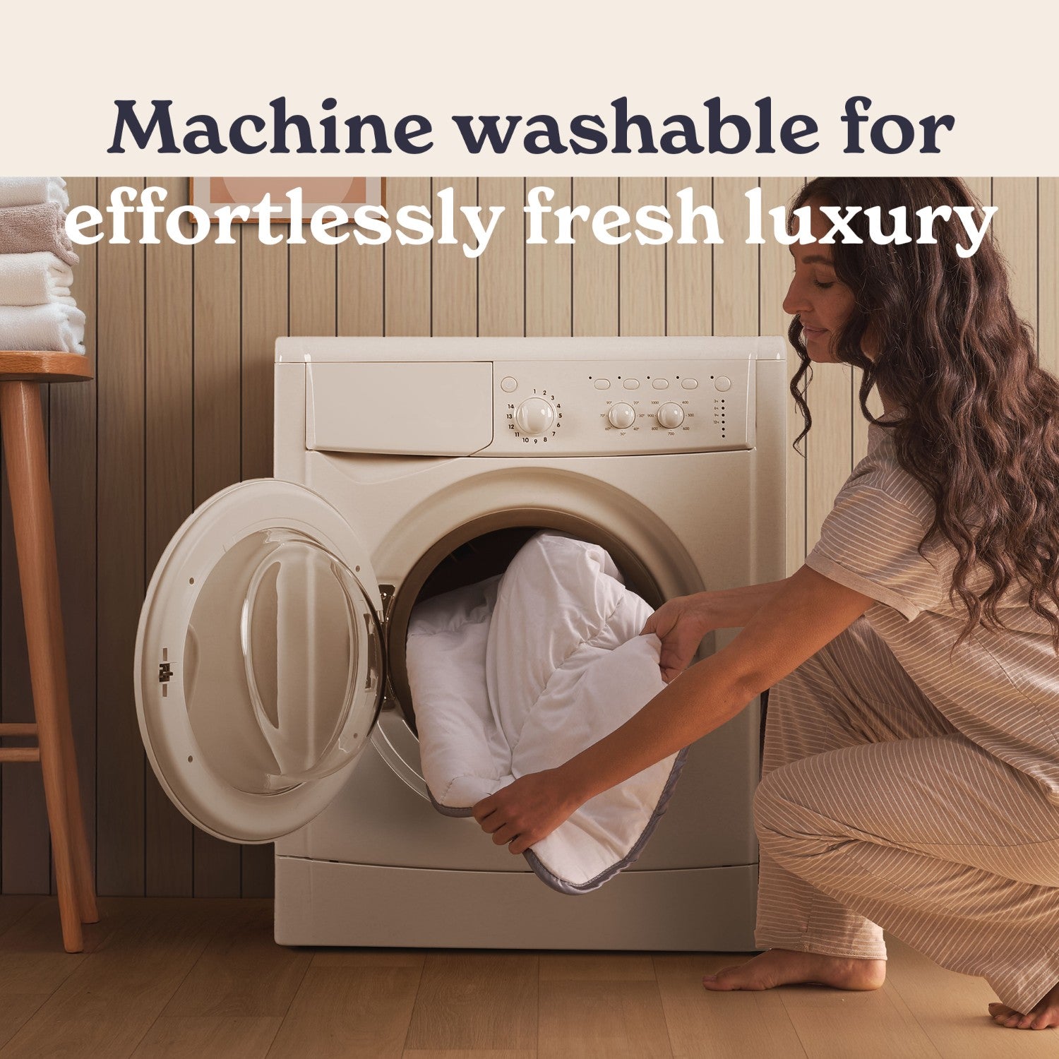 Crafted from 100% pure cotton, the cover feels sumptuously smooth and cool against the skin, while being machine washable to maintain its fresh, inviting feel. Whether for everyday relaxation or a touch of quiet luxury, this is natural comfort, styled with effortless elegance to suit every home.