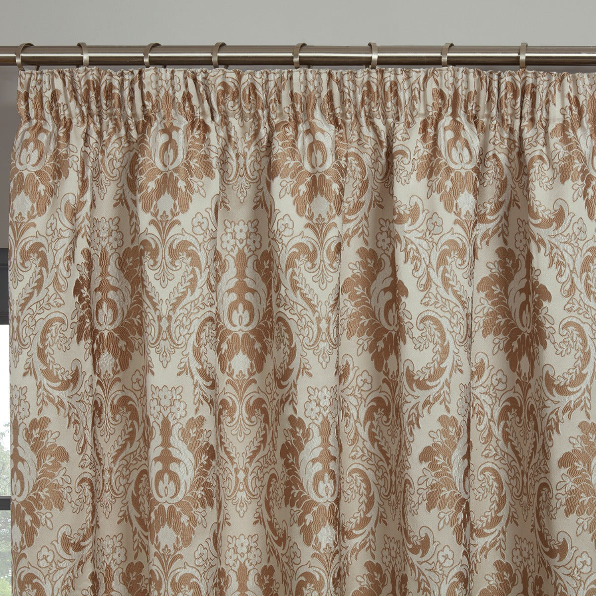 Tegola Latte Luxury Jacquard Pencil Pleat Curtains