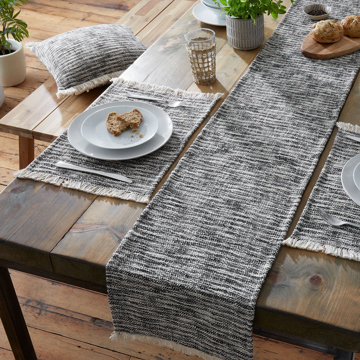 Add an artisanal feel to your everyday dining space with this textured frayed edge table runner. Woven from a natural cotton and finished with frayed edge detail creating a rustic style to your tablescape.
