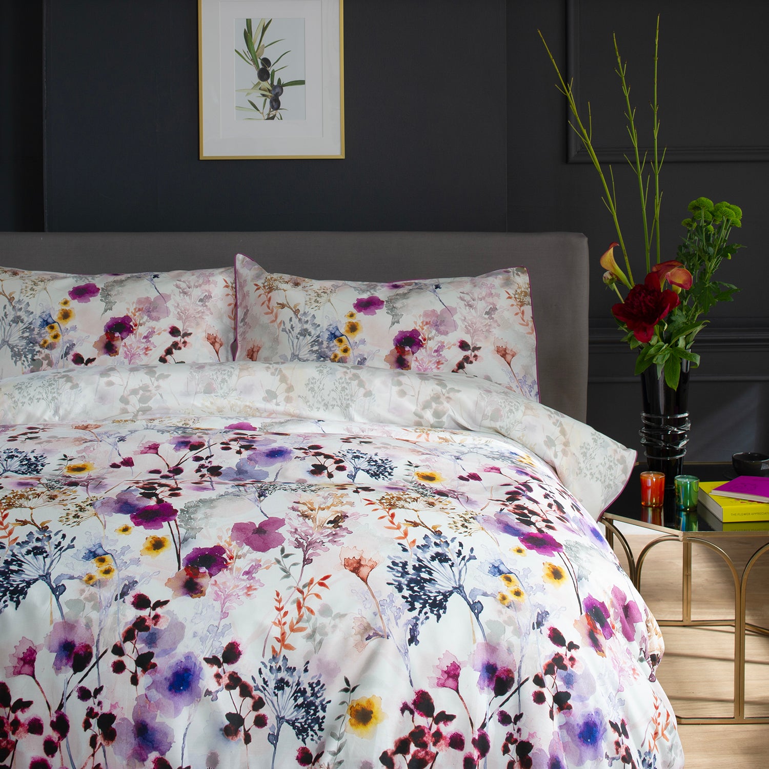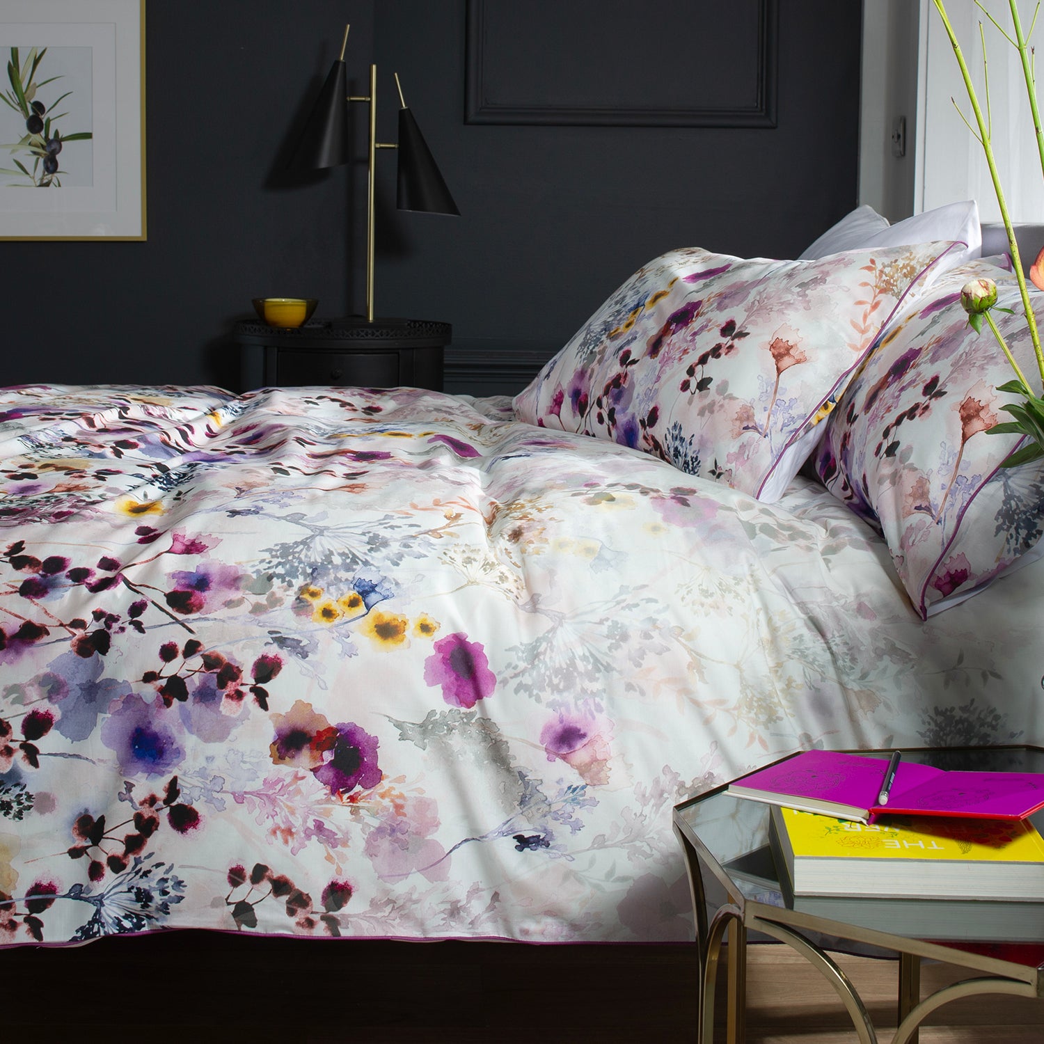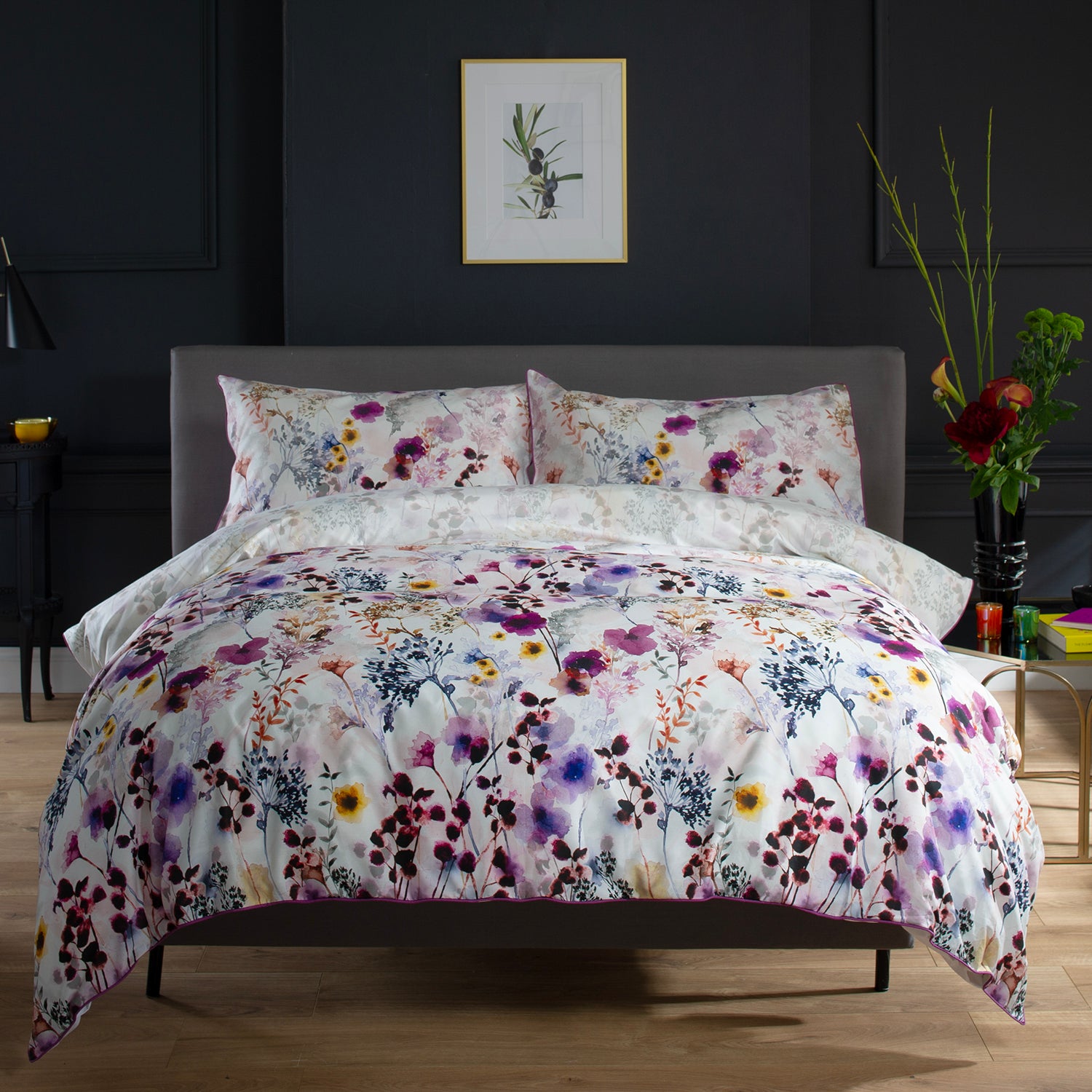 The Lyndon Company Watercolour Floral Lavender Cotton Duvet Set