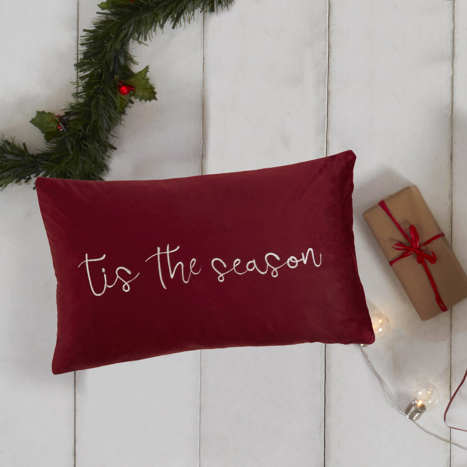 Get into the Christmas spirit with our "Tis The Season" embroidered cushion.