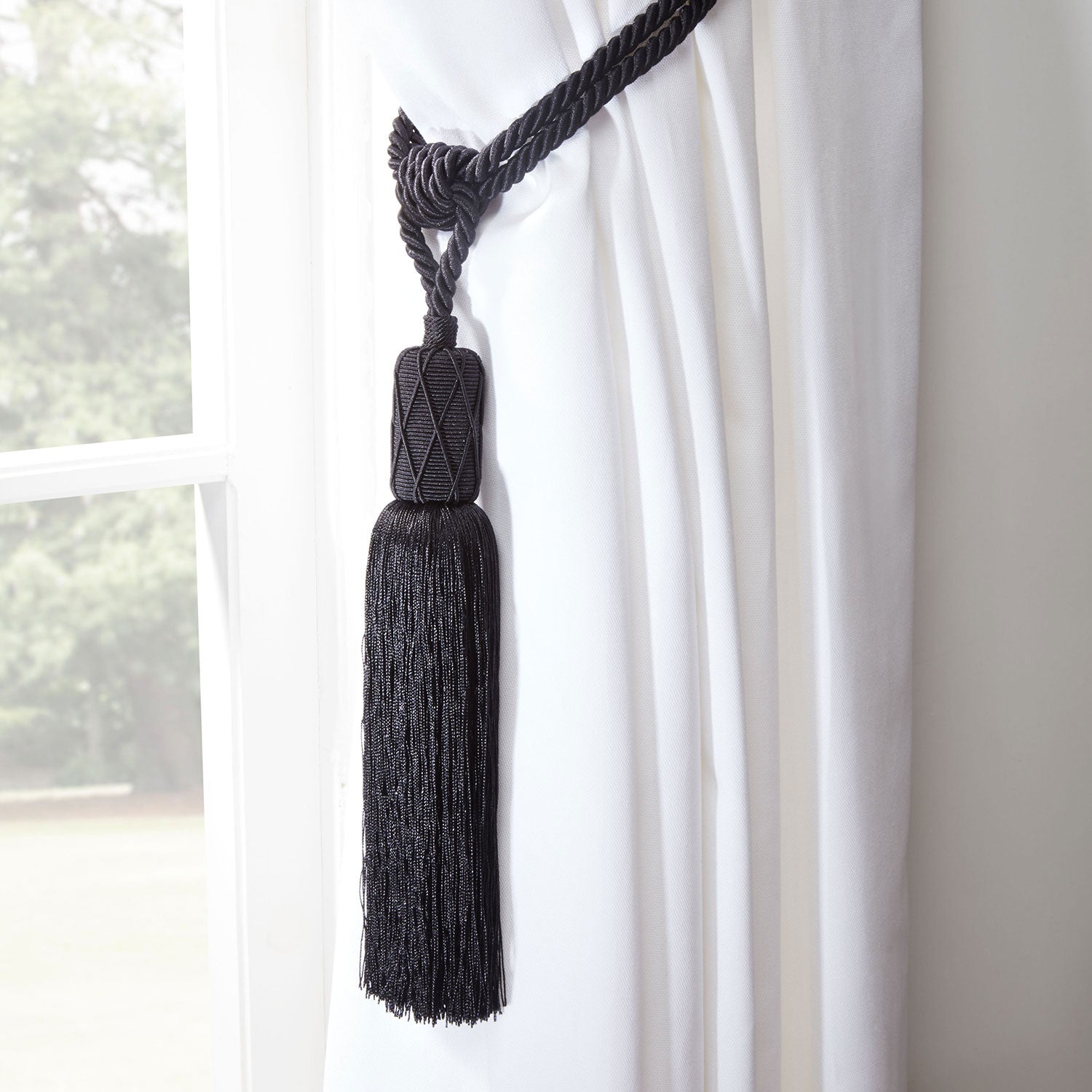 Trellis Black Tassel Curtain Tieback Pair