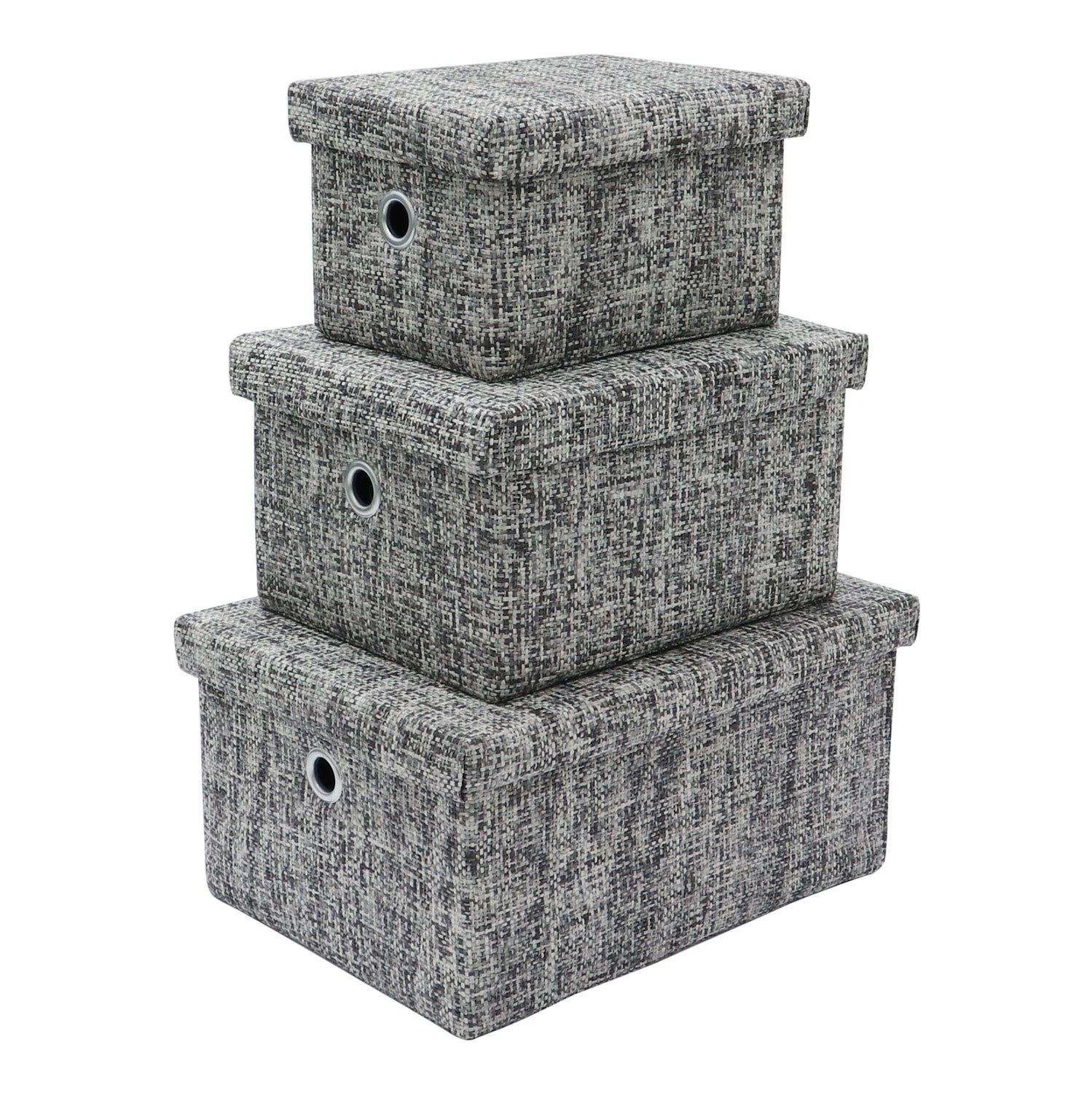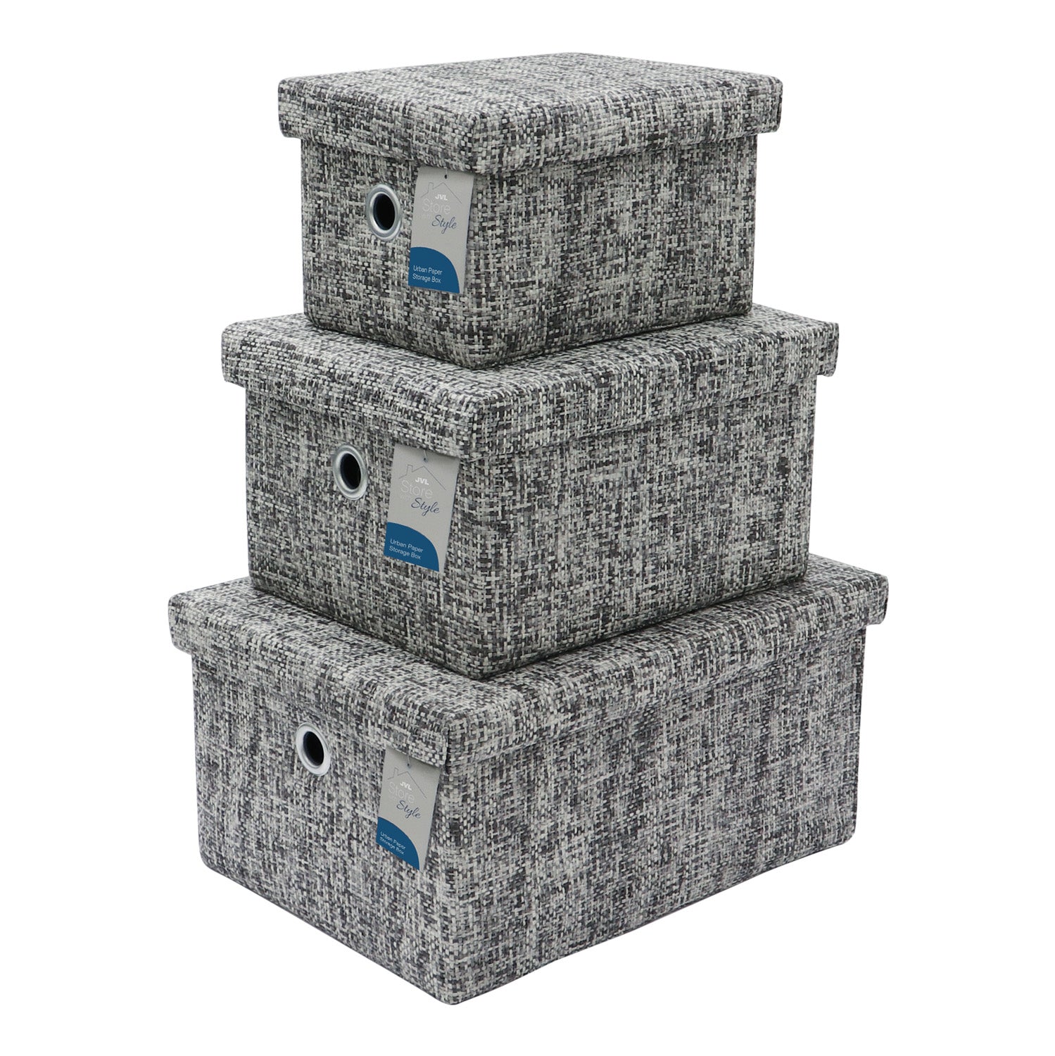 Urban Set of 3 Rectangular Paper Storage Baskets with Lids