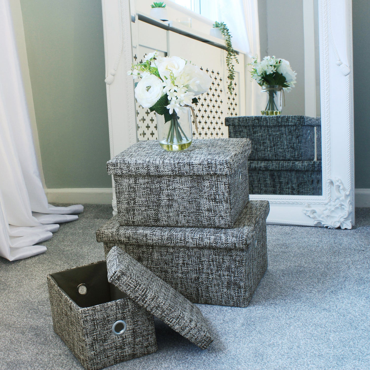 Our versatile lidded storage boxes provide a neat and tidy storage solution. They are attractive boxes with lids, perfect for storing bits and pieces around the home such as in a bedroom, living room, playroom, utility room or children's bedrooms.