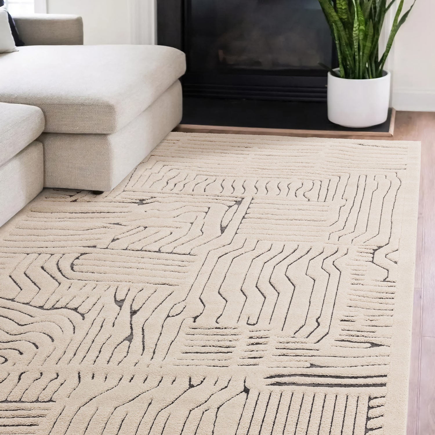 Sink your feet into the indulgently soft Valley Ivory Charcoal Route Rug. This eye-catching rug makes a bold statement on its own, enhanced by artfully machine carved 3D patterns.