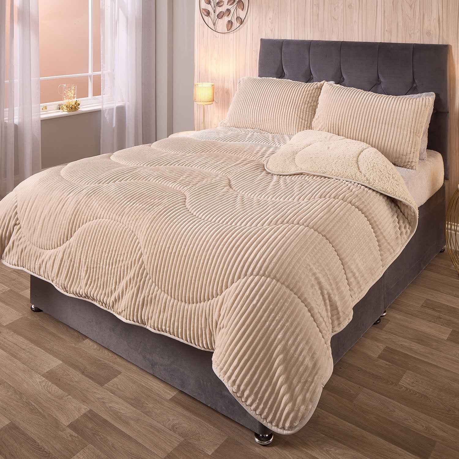 Velvet Cord and Teddy Sherpa Coverless 10.5 Tog Duvet and Pillowcases