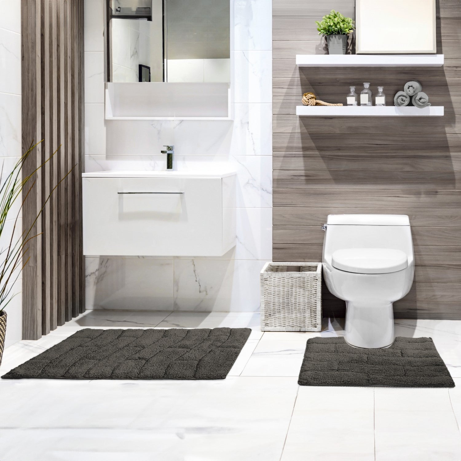 The plush cotton surface quickly absorbs water and dries fast, ensuring comfort from one use to the next. Crafted from incredibly soft cotton, this luxurious mat set includes both a pedestal mat and a bath mat. The coated reverse of the bath mat keeps it securely in place, even when wet, providing added safety.
