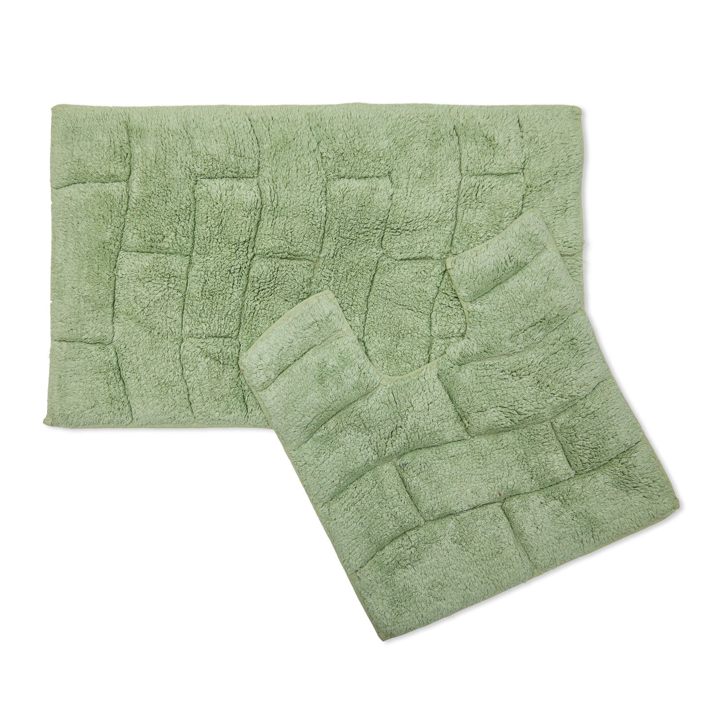 Waves Sage Green Cotton Jacquard Bath Mat Set