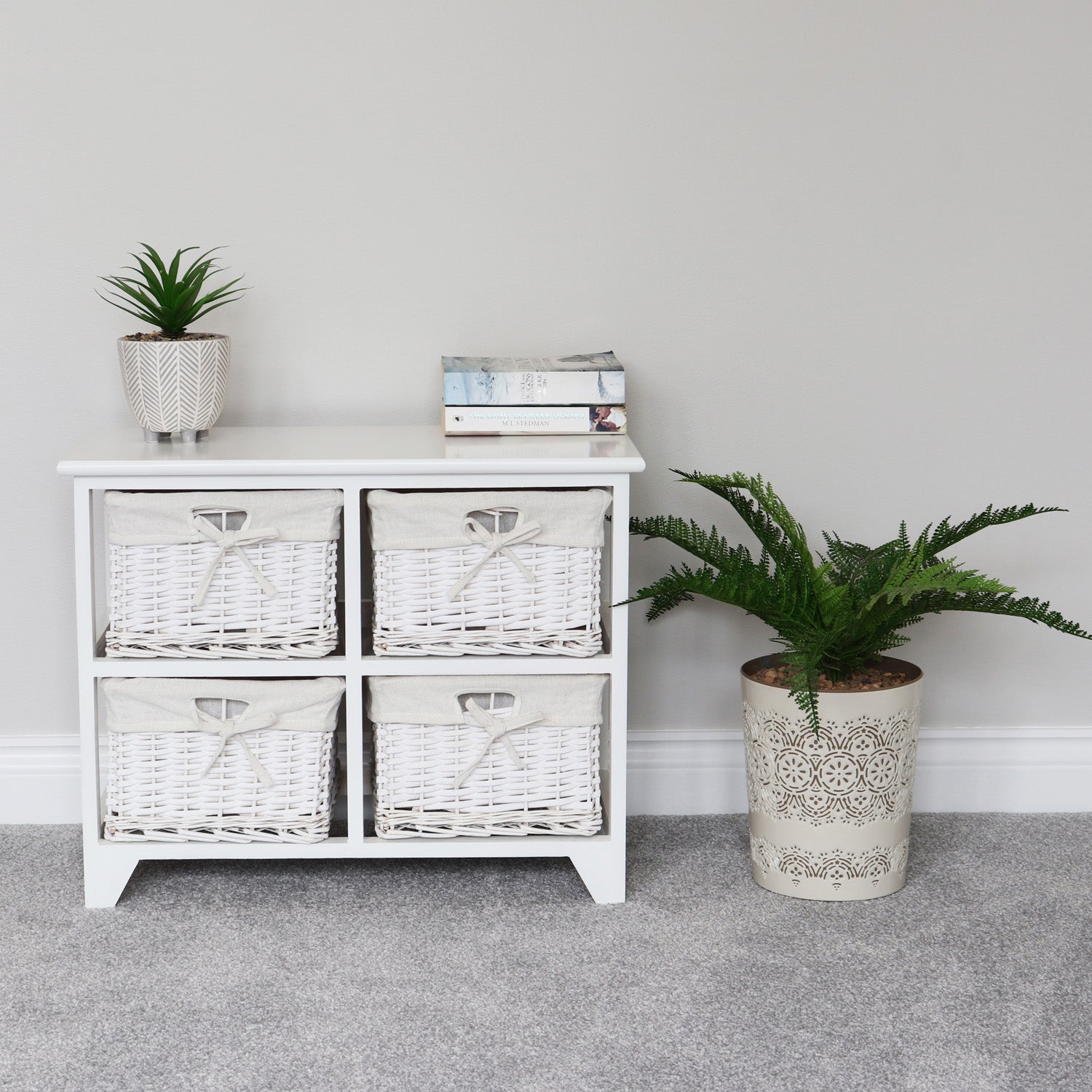 Storage is an important part of any home and the Wimborne four-drawer storage unit is an ideal solution. The four woven Willow baskets feature side by side to create a wide furniture piece.